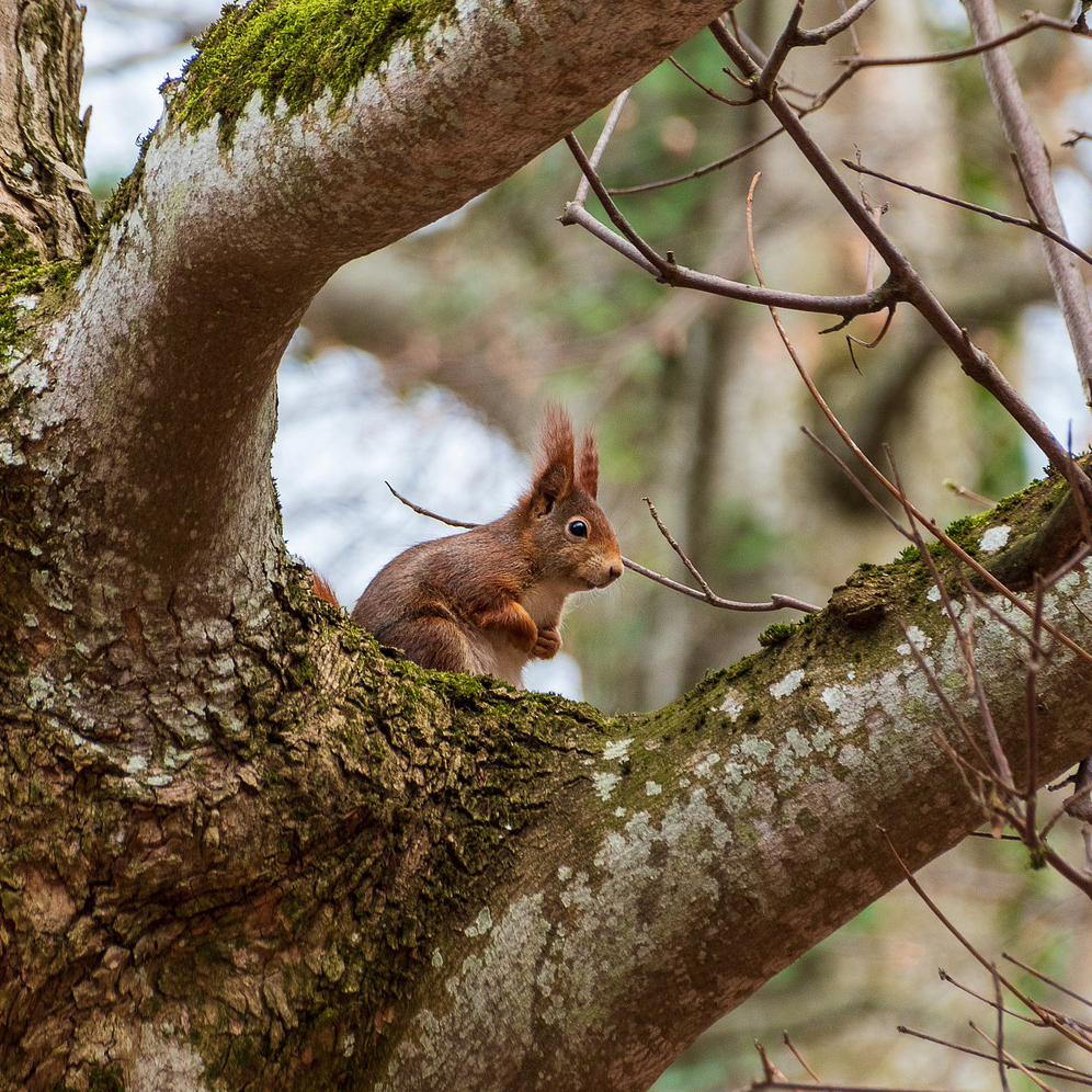Come l’orso anche lo scoiattolo risente della frammentazione del bosco, che viene interrotto da strade, case e città ma non solo. La presenza dello scoiattolo rosso è minacciata da un nuovo abitante del bosco: lo scoiattolo grigio.